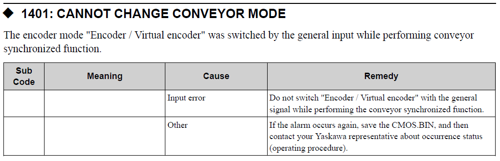 YRC1000 ALARM CODE 1401 CANNOT CHANGE CONVEYOR MODE October 27, 2023 18:28 Updated Comments 0 comments Please sign in to leave a comment.