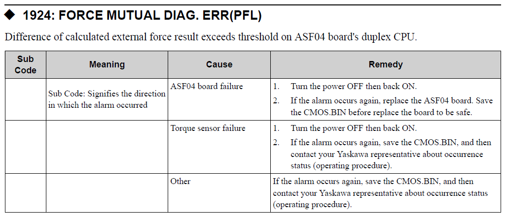 YRC1000 ALARM CODE 1924 FORCE MUTUAL DIAG. ERROR (PFL) October 30, 2023 18:58 Updated Comments 0 comments Please sign in to leave a comment.