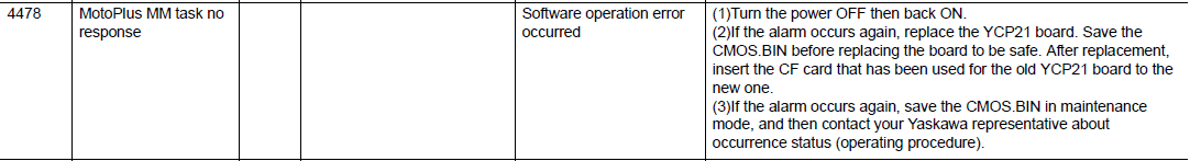 DX200 ALARM CODE 4478 MOTOPLUS MM TASK NO RESPONSE December 28, 2023 16:11 Updated Comments 0 comments Please sign in to leave a comment.