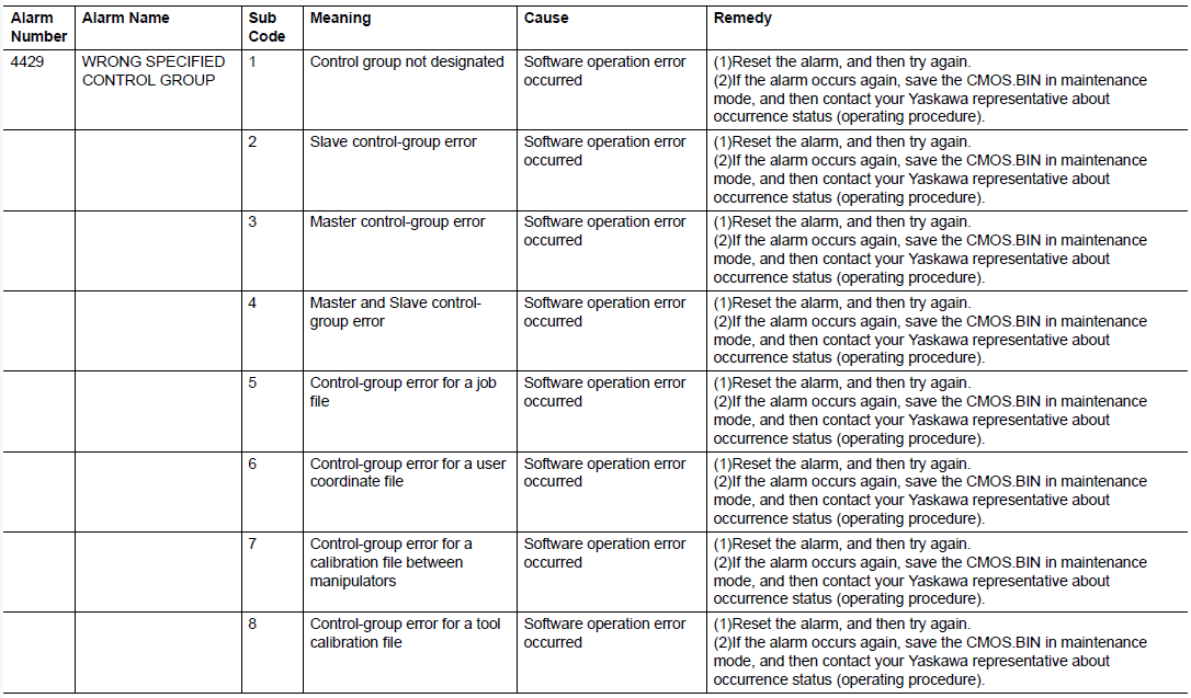 DX200 ALARM CODE 4429 WRONG SPECIFIED CONTROL GROUP February 06, 2024 16:09 Updated Comments 0 comments Please sign in to leave a comment.