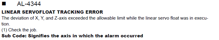 DX100 ALARM CODE 4344 LINEAR SERVOFLOAT TRACKING ERROR March 20, 2024 14:42 Updated Comments 0 comments Please sign in to leave a comment.