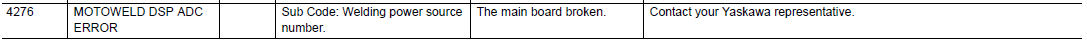 DX100 ALARM CODE 4276 MOTOWELD DSP ADC ERROR March 26, 2024 14:09 Updated Comments 0 comments Please sign in to leave a comment.