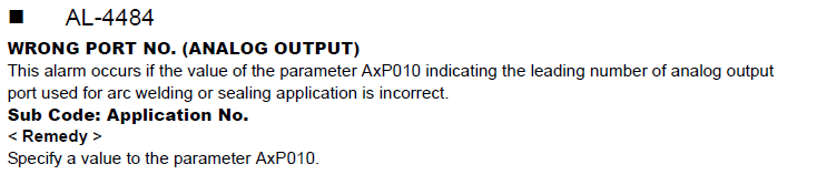 DX100 ALARM CODE 4484 WRONG PORT NO. (ANALOG OUTPUT) April 02, 2024 13:58 Updated Related articles YRC1000 ALARM CODE 4484 WRONG PORT NO. (ANALOG OUTPUT) User Alarm and User Messages Explained DX200 Comment Out Function YRC1000: General Operators DX200 ALARM CODE 4744 M-SAFE PP ENABLE SW SIGNAL ERROR Comments 0 comments Please sign in to leave a comment.