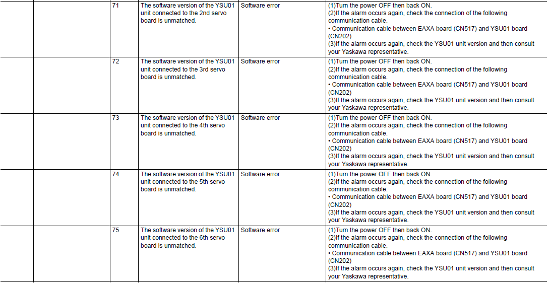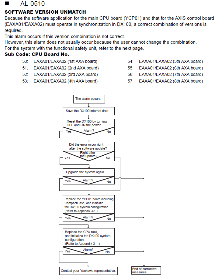 DX100 ALARM CODE 0510 SOFTWARE VERSION UNMATCH April 11, 2024 19:32 Updated Related articles NX100 ALARM CODE 0510 SOFTWARE VERSION UNMATCH DX200 ALARM CODE 0510 SOFTWARE VERSION UNMATCH FS100 ALARM CODE 0920 BUS ERROR (CPU-201R) FS100 ALARM CODE 0020 CPU COMMUNICATION ERROR NX100 ALARM CODE 1101 SYSTEM ERROR (SYSTEM 1 ) Comments 0 comments Please sign in to leave a comment.