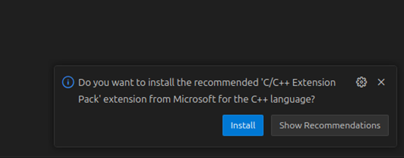 If not already installed, Visual Studio Code will prompt you to install the "C/C++ Extension Pack." This is not needed for this tutorial. - Copy and paste this code into the newly created .cpp file