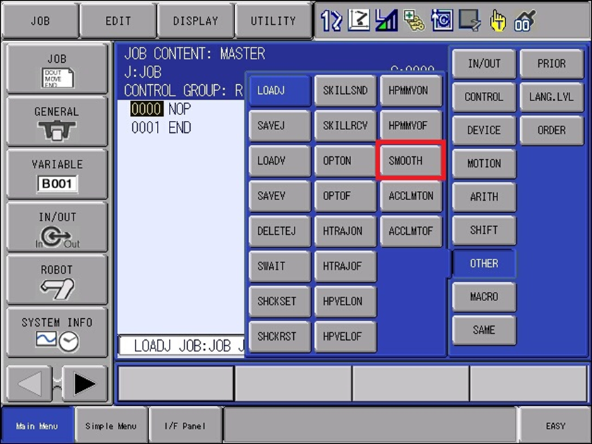 Still other INFORM commands require not only the correct software versions but are also only available once a control parameter is set. One such command is SMOOTH (Manipulator Motion Filter Setting Function). SMOOTH became available in YAS 4.13 (YBS 2.49 for YRC1000micro) or newer but will still not be initially available.