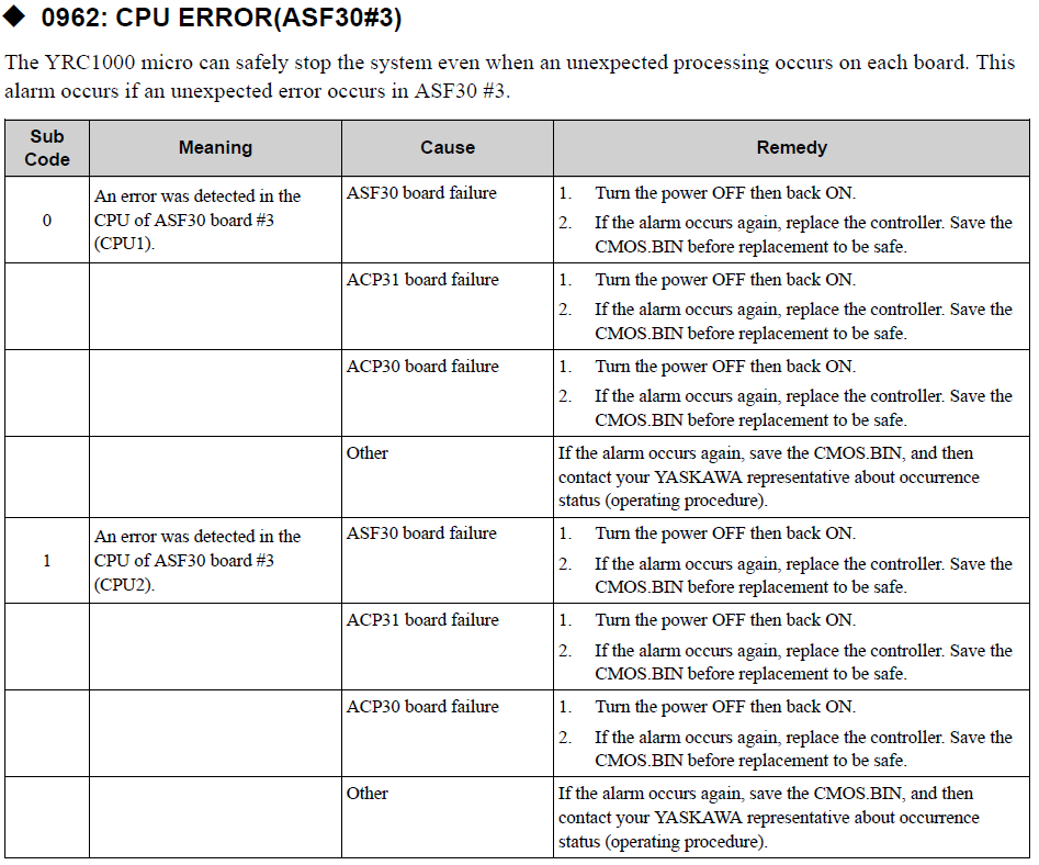 YRC1000MICRO ALARM CODE 0962 CPU ERROR (ASF30#3) August 14, 2024 14:28 Updated Comments 0 comments Please sign in to leave a comment.