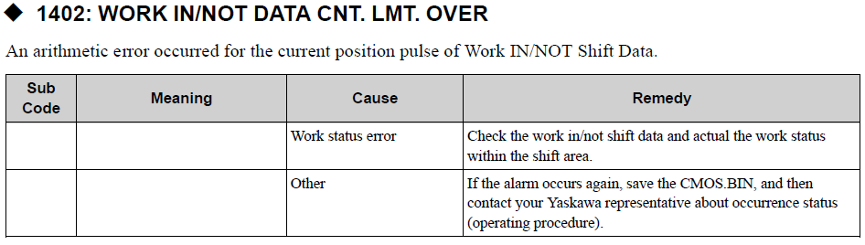 YRC1000MICRO ALARM CODE 1402 WORK IN/NOT DATA CNT. LMT. OVER August 16, 2024 13:30 Updated Comments 0 comments Please sign in to leave a comment.