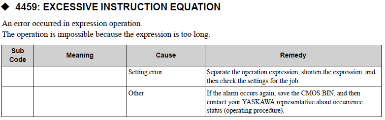YRC1000MICRO ALARM CODE 4459 EXCESSIVE INSTRUCTION EQUATION August 19, 2024 17:40 Updated Comments 0 comments Please sign in to leave a comment.