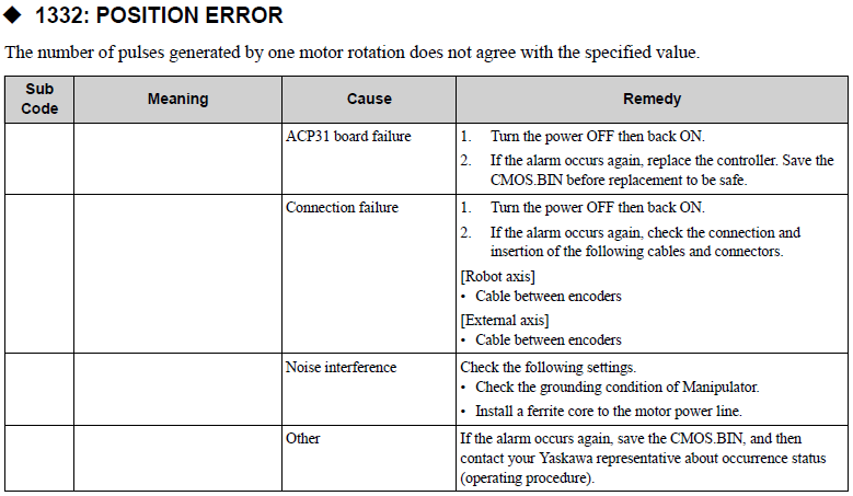 YRC1000MICRO ALARM CODE 1332 POSITION ERROR August 20, 2024 20:14 Updated Comments 0 comments Please sign in to leave a comment.