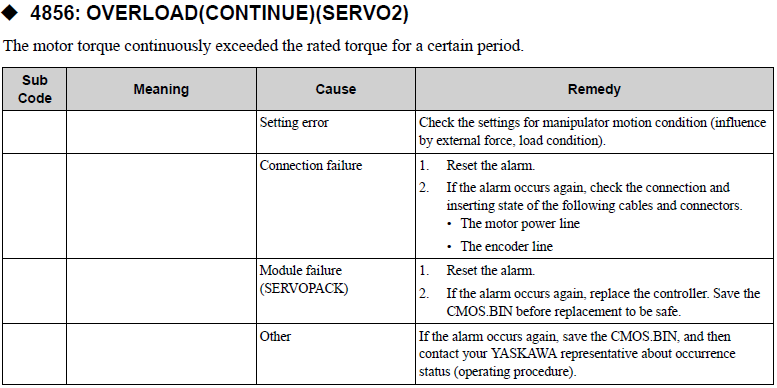 YRC1000MICRO ALARM CODE 4856 OVERLOAD (CONTINUE)(SERVO2) August 26, 2024 18:48 Updated Comments 0 comments Please sign in to leave a comment.