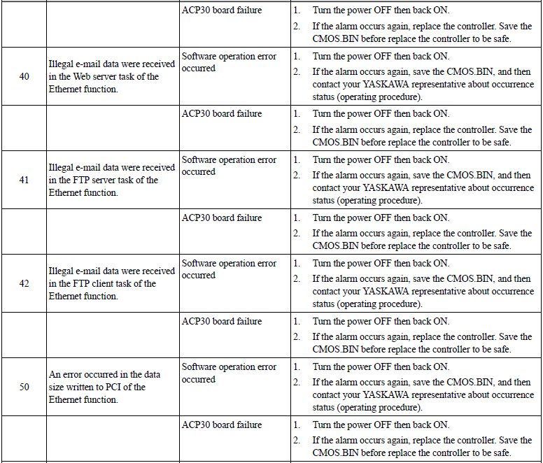 YRC1000MICRO ALARM CODE 4130 NETWORK APPLICATION PROCESS ERROR September 17, 2024 19:34 Updated Comments 0 comments Please sign in to leave a comment.