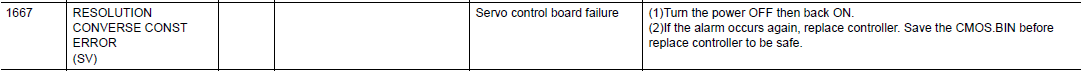 FS100 ALARM CODE 1667 RESOLUTION CONVERSE CONST ERROR (SV) October 01, 2024 20:26 Updated Comments 0 comments Please sign in to leave a comment.