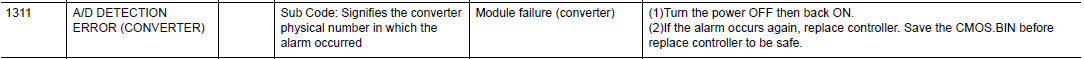 FS100 ALARM CODE 1311 A/D DETECTION ERROR (CONVERTER) October 04, 2024 15:15 Updated Comments 0 comments Please sign in to leave a comment.