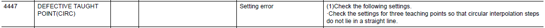 FS100 ALARM CODE 4447 DEFECTIVE TAUGHT POINT (CIRCLE) October 08, 2024 14:46 Updated Comments 0 comments Please sign in to leave a comment.