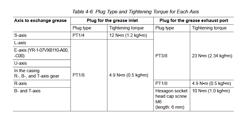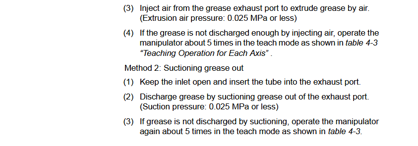 Grease Procedure (PM) GP110 / YR-1-06VX110-A00 Manipulator June 23, 2025 12:38 Updated Model Covered: YR-1-06VX110-A00 Material Required: MOLYWHITE RE NO.00 132412-1TAPE, PIPE, TEFLON, 1/2 IN X 1296 IN 151720-1 Related articles Grease Procedure (PM) GP225 / YR-1-06VX225-A00 Manipulator Battery Replacement GP110 / YR-1-06VX110-A00 Manipulator Power Source Condition Files Grease Procedure (PM) SP100 / YR-1-06VX110-A00 Manipulator Grease Procedure (PM) GP165R / YR-1-06VR165-A00 Manipulator Comments 0 comments Please sign in to leave a comment.
