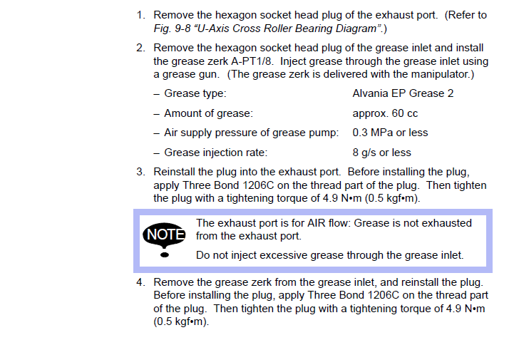 U-AXIS CROSS ROLLER BEARING: Alvania EP2 60 cc