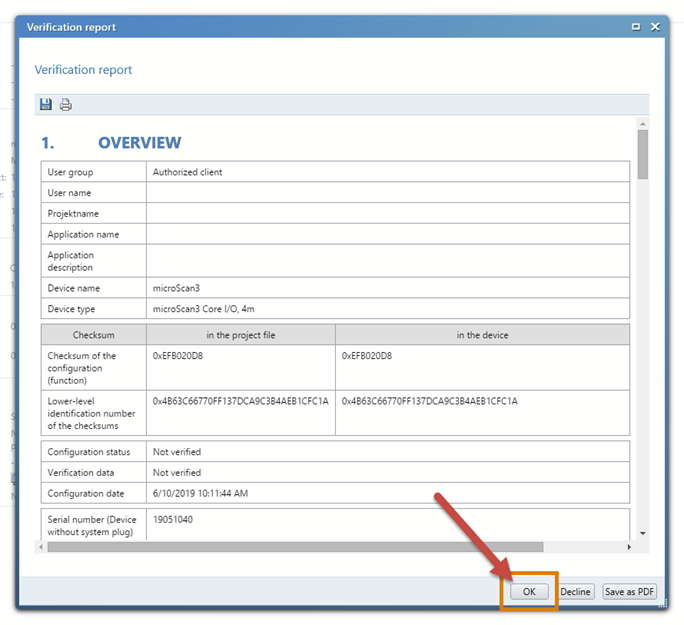 Now left click and hold on the microScan3 under “Found devices” and drag this scanner on top of the microScan3 in the Device overview window. Release the mouse button.