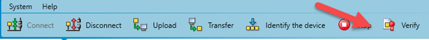 From the top menu, press the button “Upload” or “Read from Device”, this means to upload the data from the device into the PC. (This text varies depending on the software version)