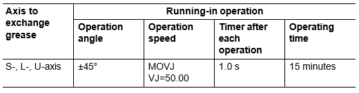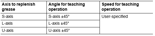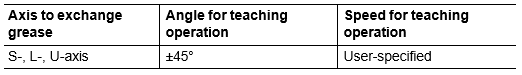 (4) If the grease is not discharged enough by injecting air, operate the manipulator about 5 times in the teach mode as shown in table 4-5 “Grease Discharging Operation for Each Axis”.