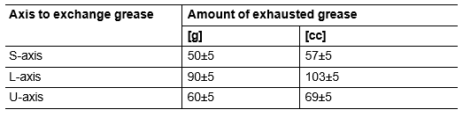 Table 4-4: Amount of Grease Discharged from Each Axis
