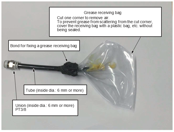 (2) Discharge grease by suctioning grease out of the exhaust port. (Suction pressure: 0.025 MPa or less)