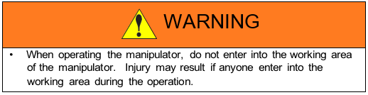 6. Operate each axis about 5 times in the teach mode as shown in fig. 4-3 “Teaching Operation for Each Axis”.