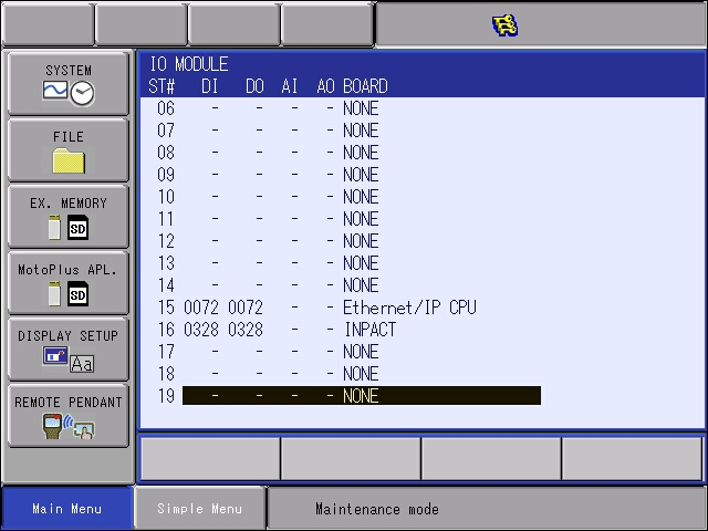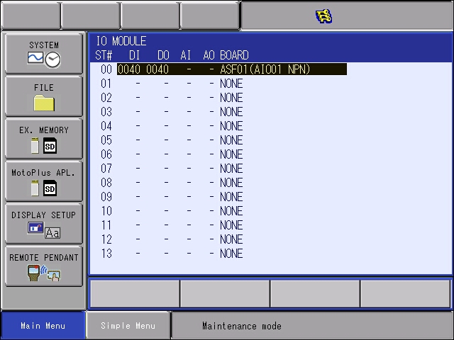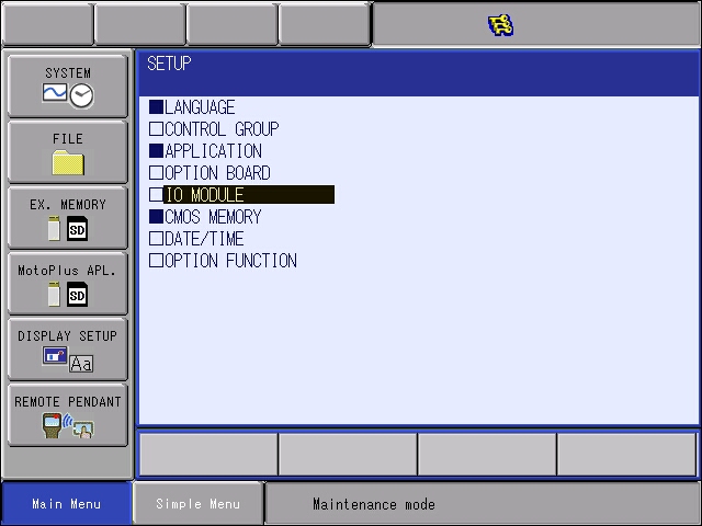 - Select menu: SYSTEM > SETUP > IO MODULE