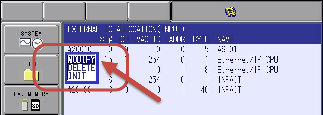- The Expanded I/O location was expected to follow the standard 40/40 I/O that is included with each robot, but the Expanded I/O that was added was mapped by EtherNet/IP, so we want to move it "forward" so it can be found easily in the I/O list and robot jobs.