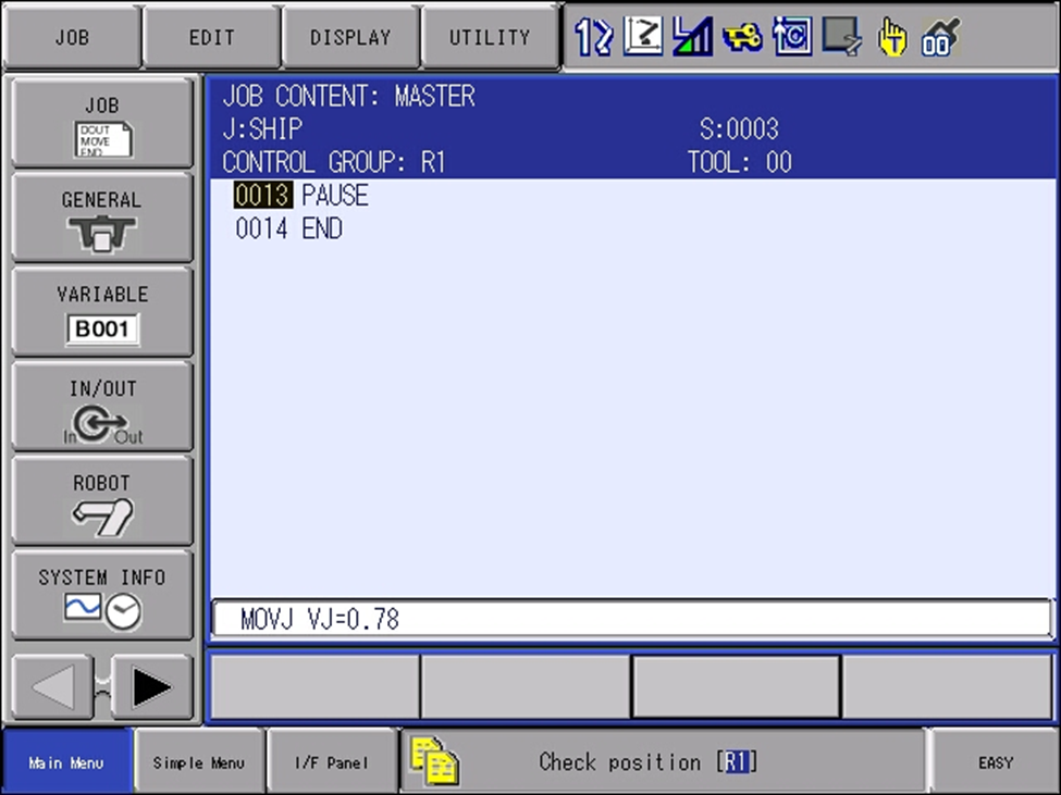 The Manipulator needs to be in the correct position to recover the lost Encoder Data. If the robot must be Forwarded or Jogged to the correct position to recover the lost Encoder Data a SPEED LIMIT (FUNCTIONAL SAFETY) Message will be displayed indicating that safe Teaching Speed Limits are being applied: