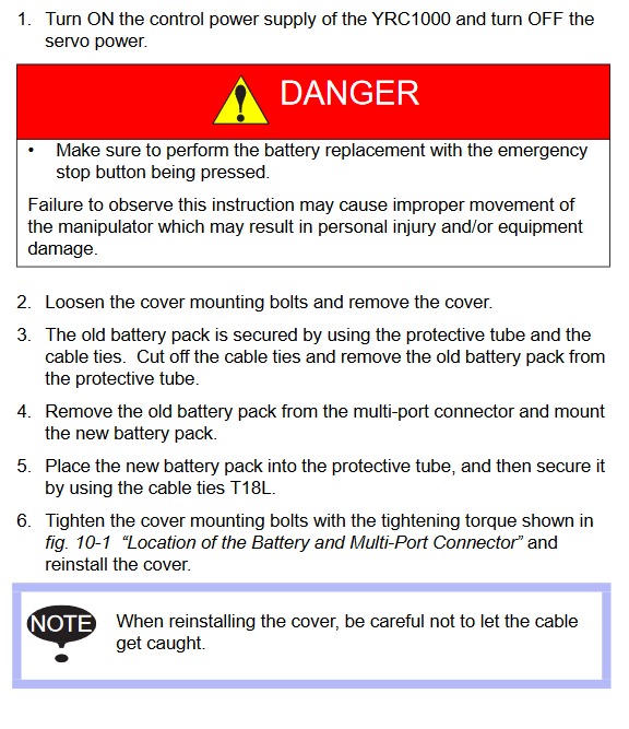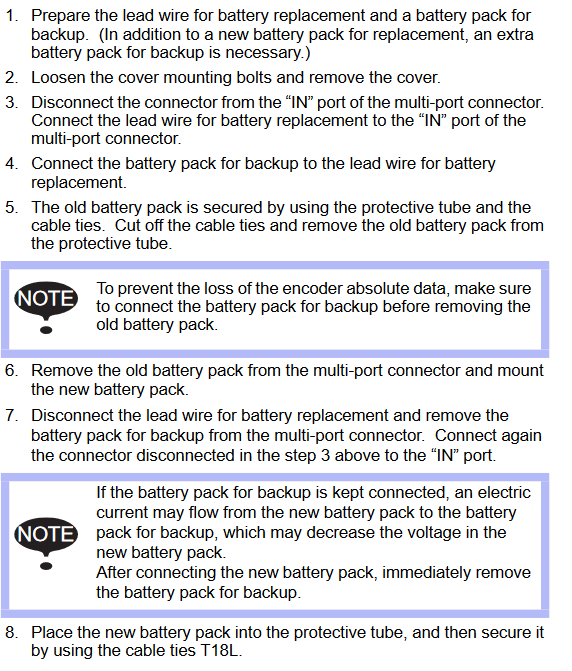 If Batteries have to be changed with power off then a backup lead is needed. HW1471281-A, 179529-1