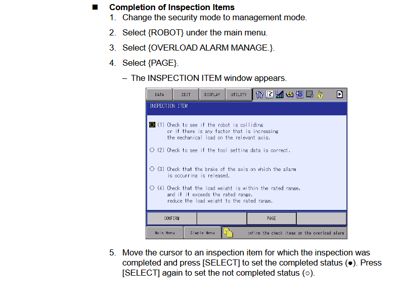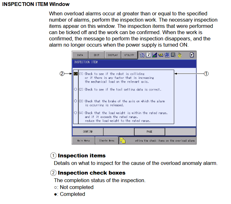 YRC1000 ALARM CODE 6228 OVERLOAD ARM CHECK September 12, 2025 19:29 Updated Alarm occurs when items need checked. Related articles Alarm 1547- Current Feedback Error DX100 and DX200 YRC1000 Light Curtain Logic via the Safety Logic Circuit Cube Soft Limit Parameters YRC1000 ALARM CODE 6288 OVERLOAD ALARM NOT INSPECTED DX200 CONTROLLER BATTERY REPLACEMENT Comments 0 comments Please sign in to leave a comment.