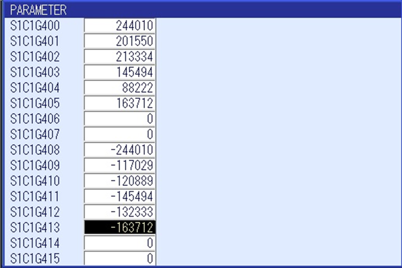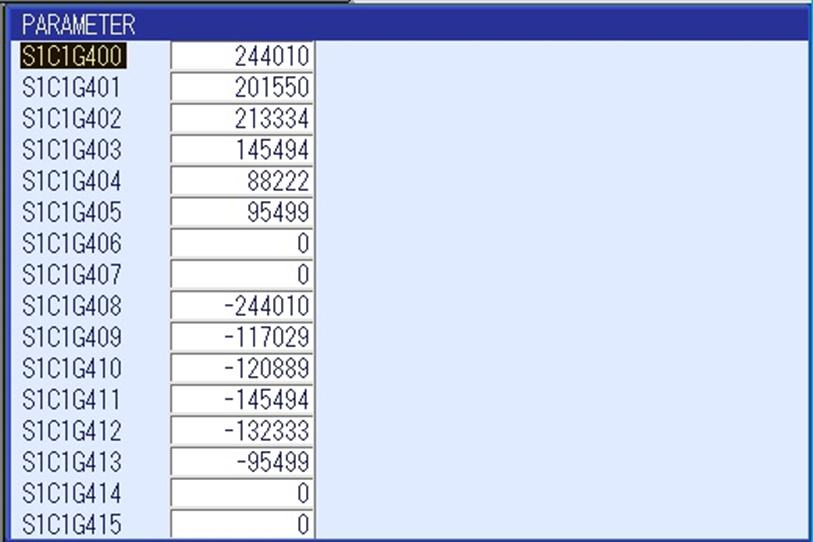 If the Soft Limits are again reduced below the limits set by new parameters by using the SOFTLIMIT SETTING screens, the reduced values will overwrite the parameter values and become the new maximum Soft Limits. Attempting to change back to the larger values using only the SOFTLIMIT SETTING screens will again result in "ERROR 1020 : Enter correct value." If larger values are needed they must again be entered into the S1C1G parameters.
