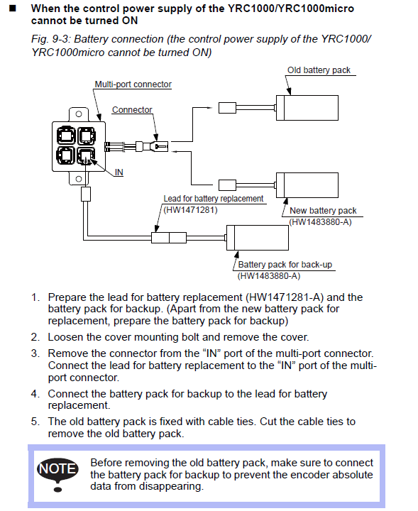 If Batteries have to be changed with power off then a backup lead is needed. HW1471281-A, 179529-1
