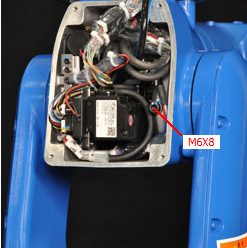 | 8. Replace the lower arm cover making sure all wiring is properly under the cover and secure with 8-M4X14 button head screws. Torque (0.14 kg-m) the screws. | |