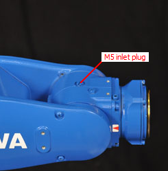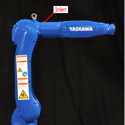 | 2. Locate the inlet at top of upper arm of the robot. | |