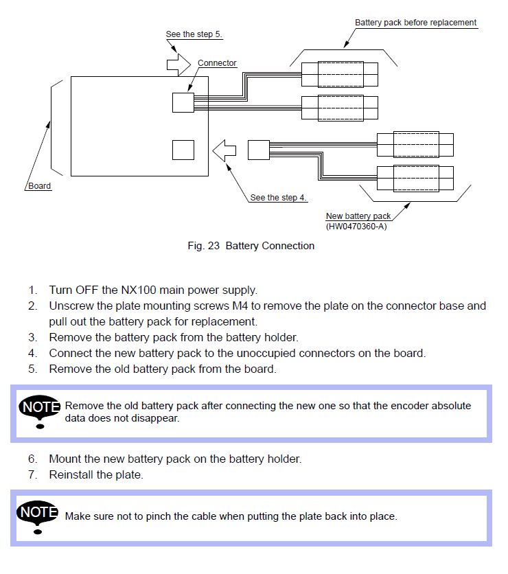 Battery Replacement EPL500 / YR-EPL500-A00 Manipulator September 26, 2025 17:52 Updated Model Covered: YR-EPL500-A00 Material Required:BATTERY SET, MANIP, NX100, W/CONN, 4 BATTERIES 149689-1 Related articles Battery Replacement EPL500 / YR-EPL500-A10 Manipulator Parts YRC1000 PL190 / YR-1-04LXH190-A01 Manipulator and Controller Comments 0 comments Please sign in to leave a comment.