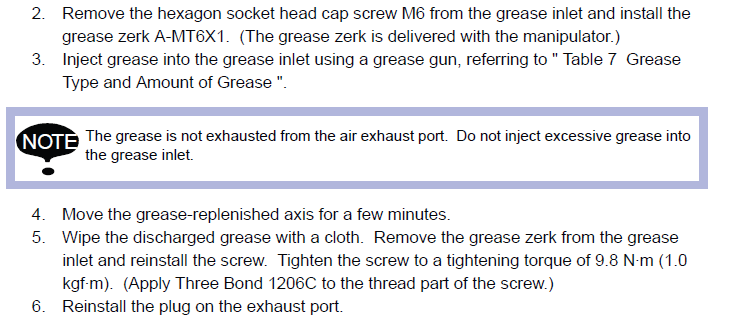 Grease Procedure (PM) IA20 / YR-IA20-A00 Manipulator October 14, 2025 14:12 Updated Model Covered: YR-IA20-A00 Material Required:Harmonic Grease SK-1A 479035-2Three Bond 1206C 479014-6 Related articles Grease Procedure (PM) IA20 / YR-IA20-A01 Manipulator Comments 0 comments Please sign in to leave a comment.