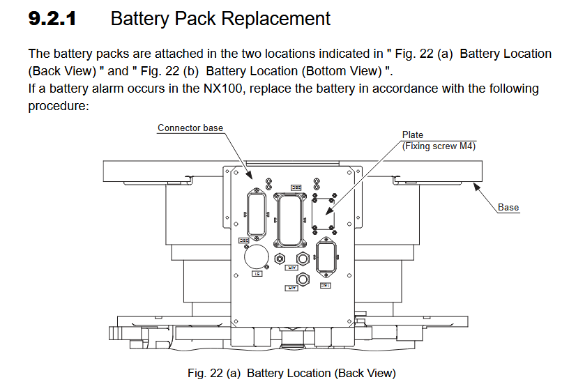 Battery Replacement ES200TN / YR-ES200TN-A01 Manipulator October 14, 2025 14:52 Updated Model Covered: YR-ES200TN-A01 Material Required:BATTERY SET, MANIP, NX100, W/CONN, 4 BATTERIES HW0470360-A/149689-1 Related articles Grease Procedure (PM) ES200TN / YR-ES200TN-A00 Manipulator Comments 0 comments Please sign in to leave a comment.