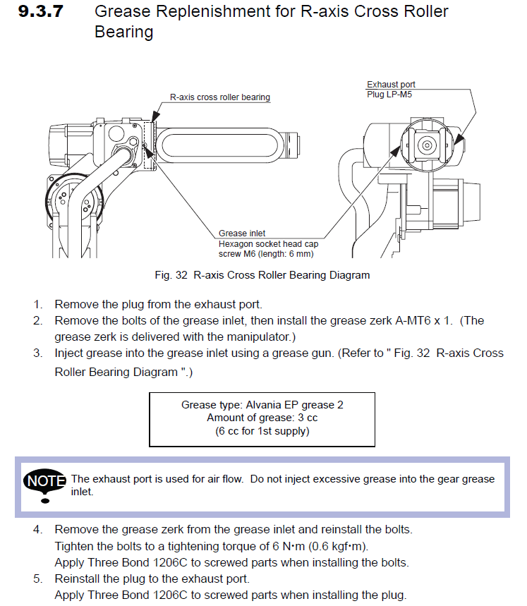 R-AXIS CROSS ROLLER BEARING: Alvania EP 2: 3cc