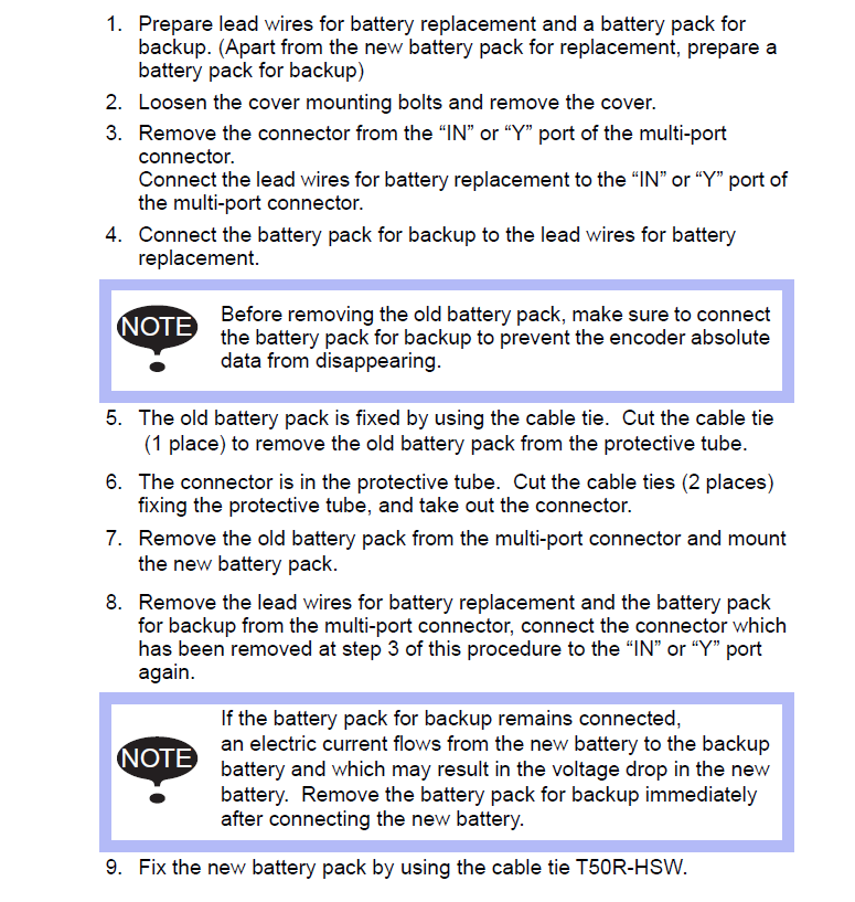 If Batteries have to be changed with power off then a backup lead is needed. HW1471281-A, 179529-1