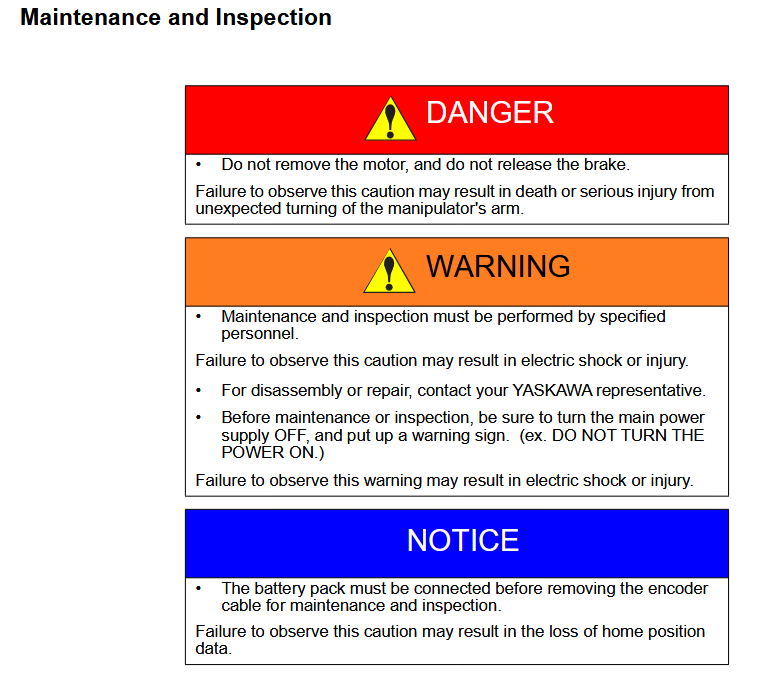 Maintenance Inspection Schedule YRC1000 GP4 / YR-1-06VX4-A01 Manipulator December 05, 2025 16:00 Updated Battery-Replacement-GP4-YR-1-06VX4-A01-ManipulatorGrease-Replenishment-PM-YR-1-06VX4-A01-GP4-Manipulator Related articles GP4 / YR-1-06VX4-A01 Manipulator Alignment Mark Locations Comments 0 comments Please sign in to leave a comment.