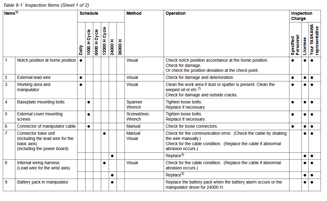 Maintenance Inspection Schedule YRC1000 HC20DT / YR-1-06VXHC20-B12 Manipulator December 09, 2025 15:51 Updated Battery-Replacement-HC20DT-YR-1-06VXHC20-B12-ManipulatorGrease-Replenishment-PM-YR-1-06VXHC20-B12-HC20DT-Manipulator Comments 0 comments Please sign in to leave a comment.