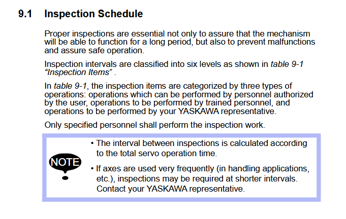 Maintenance Inspection Schedule YRC1000 GP280L / YR-1-06VXL280-D00 Manipulator December 09, 2025 20:59 Updated Battery-Replacement-GP280L-YR-1-06VXL280-D00-ManipulatorGrease-Procedure-PM-GP280L-YR-1-06VXL280-D00-Manipulator Related articles NX100 ALARM CODE 4228 WRONG DATA YRC1000 ALARM CODE 1681 BRAKE POWER ERROR Comments 0 comments Please sign in to leave a comment.