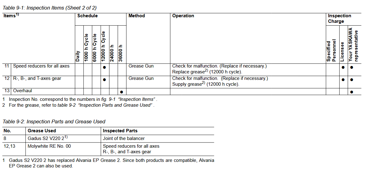Maintenance Inspection Schedule YRC1000 GP180 / YR-1-06VX180-A00 Manipulator December 10, 2025 21:19 Updated Battery-Replacement-GP180-YR-1-06VX180-A00-ManipulatorGrease-Procedure-PM-GP180-YR-1-06VX180-A00-Manipulator Related articles Grease Procedure (PM) GP180 / YR-1-06VX180-F00 Manipulator YRC1000: Instructions Parts YRC1000 GP180 YR-1-06VX180-F00 Manipulator and Controller Parts YRC1000 GP180 YR-1-06VX180-A00 Manipulator and Controller Servo-On-Ready Signal for the YRC1000 Series Comments 0 comments Please sign in to leave a comment.