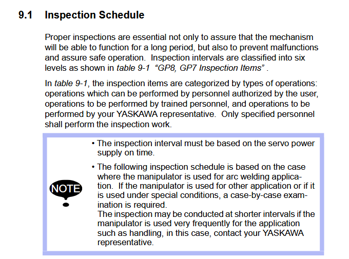 Maintenance Inspection Schedule YRC1000 GP7 / YR-1-06VX7-F40 Manipulator December 11, 2025 14:07 Updated BATTERY-REPLACEMENT-GP7-YR-1-06VX7-F40-MANIPULATORGrease-Replenishment-PM-GP7-YR-1-06VX7-F40-Food-Grade-Grease-Procedure Related articles Parts YRC1000 GP7 / YR-1-06VX7-F40 Manipulator and Controller Grease Replenishment (PM) GP7/YR-1-06VX7-F00 Food Grade Grease Maintenance Inspection Schedule YRC1000 GP7 / YR-1-06VX7-A00 Manipulator YRC1000MICRO CONTROLLER BATTERY REPLACEMENT Grease Replenishment (PM) GP7/YR-1-06VX7-B00 Comments 0 comments Please sign in to leave a comment.