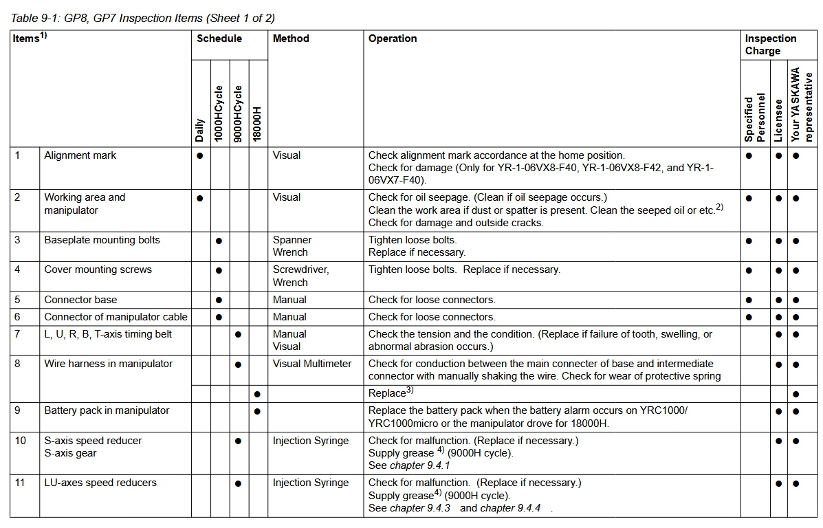 Maintenance Inspection Schedule YRC1000 GP8 / YR-1-06VX8-F41 Manipulator December 11, 2025 14:25 Updated Battery-Replacement-GP8-YR-1-06VX8-F40-YR-1-06VX8-F41-ManipulatorGrease-Replenishment-PM-GP8-YR-1-06VX8-F41-Special-Surface-Treatment-Food-Grade-Grease Related articles Grease Replenishment (PM) GP8/YR-1-06VX8-A00 Comments 0 comments Please sign in to leave a comment.