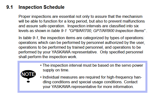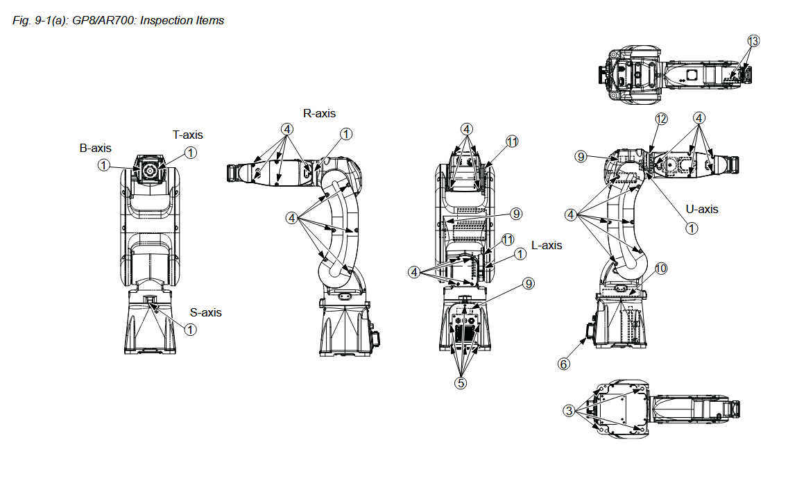 Maintenance Inspection Schedule YRC1000 GP8 / YR-1-06VX8-A00 Manipulator January 07, 2026 20:50 Updated GP8-YR-1-06VX8-A00-Manipulator-Alignment-Mark-LocationsBATTERY-REPLACEMENT-GP8-AR700-MANIPULATORGrease-Replenishment-PM-GP8-YR-1-06VX8-A00 Related articles GP8 / YR-1-06VX8-A00 Manipulator Alignment Mark Locations Parts YRC1000 GP8 YR-1-06VX8-F42 Manipulator and Controller Maintenance Inspection Schedule YRC1000 GP8 / YR-1-06VX8-B00 Manipulator Parts YRC1000 GP8 YR-1-06VX8-A00 Manipulator and Controller Comments 0 comments Please sign in to leave a comment.