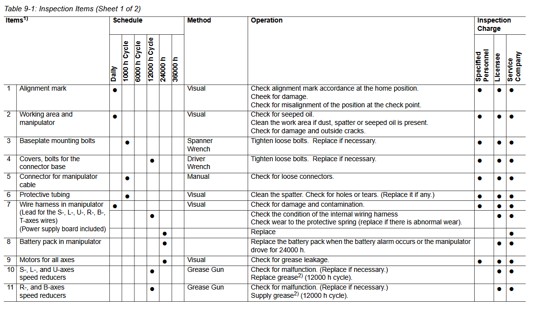 Maintenance Inspection Schedule YRC1000 GP20HL / YR-1-06VXHL20-A00 Manipulator December 12, 2025 15:24 Updated Battery-Replacement-GP20HL-YR-1-06VXHL20-A00-ManipulatorGrease-Procedure-PM-GP20HL-YR-1-06VXHL20-A00-Manipulator Related articles Maintenance Inspection Schedule YRC1000 GP25-12 / YR-1-06VXH25-A10 Manipulator Maintenance Inspection Schedule YRC1000 GP20HL / YR-1-06VXHL20-C00 Manipulator Grease Procedure (PM) MA3120 / YR-MA03120-A00 Manipulator Grease Procedure (PM) GP20HL / YR-1-06VXHL20-A00 Manipulator Battery Replacement GP20HL / YR-1-06VXHL20-A00 Manipulator Comments 0 comments Please sign in to leave a comment.