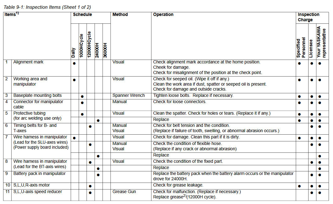 Maintenance Inspection Schedule YRC1000 GP25-12 / YR-1-06VXH25-A10 Manipulator December 15, 2025 18:53 Updated Battery-Replacement-GP25-12-YR-1-06VXH25-A10-ManipulatorGrease-Procedure-PM-GP25-12-YR-1-06VXH25-A10-Manipulator Related articles Maintenance Inspection Schedule YRC1000 GP20HL / YR-1-06VXHL20-A00 Manipulator Parts YRC1000 AR3120 / YR-1-06VXHL20-A00 Manipulator and Controller Grease Procedure (PM) GP25-12 / YR-1-06VXH25-A11 Manipulator Grease Procedure (PM) GP25-12 / YR-1-06VXH25-A10 Manipulator Comments 0 comments Please sign in to leave a comment.